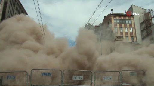 İstanbul Karaköy'de kısmı çökmelerin yaşandığı gerekçesiyle çevresinde önlem alınan 5 katlı bina tamamen çöktü.