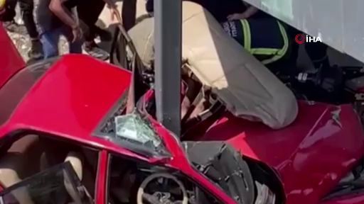 Bursa'da direğe çarpan araç kağıt gibi ikiye katlandı! Ağır yaralılar var...