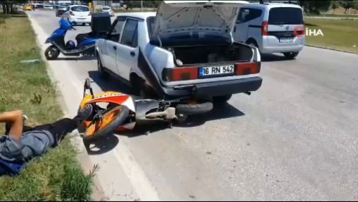 Bursa’nın İnegöl ilçesinde kavşakta arıza yapan otomobile arkadan çarpan motosiklet sürücüsü yaralandı.