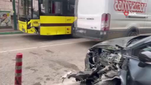 Bursa’da yolcu indirmek için durağa yanaşan halk otobüsüne ters şeritten gelen otomobil çarptı. Kazada otomobil sürücüsü yaralanırken, çevredeki vatandaşlar korku dolu anlar yaşadı.