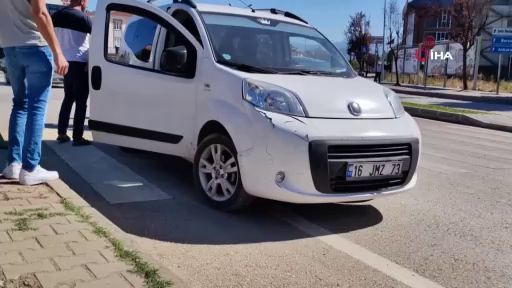 Bursa'nın İnegöl ilçesinde hafif ticari aracın çarptığı kadın yaralandı. Yaralı kadının eşi ve çocukları ile çarpan sürücü arasında kavga çıktı. Kavga anı amatör kameraya yansıdı.