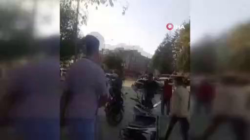 Bursa'nın İnegöl ilçesinde meydana gelen maddi hasarlı kazanın ardından sürücüler birbirine girdi. Tekmeli kavgada bir sürücü bıçakla dehşet saçtı. O anlar amatör kameraya yansıdı.