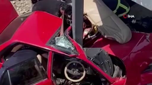 Bursa’da hızla giden sürücüsünün kontrolünden çıkan otomobil, üst geçidin direğine çarptı. Aracın hızla geldiği ve direğe çarptığı anlar güvenlik kamerasına yansırken, otomobilde sıkışan sürücü ve kardeşi hastanede tedavi altına alındı.