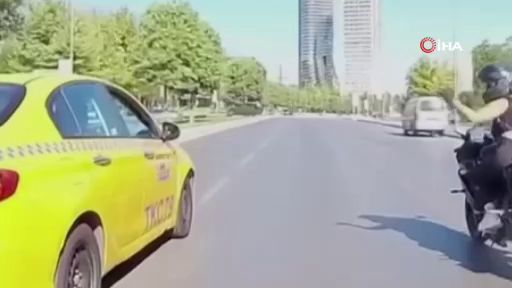 İstanbul'da motosiklet sürücüsü, kendisine çarpıp kaçan taksi şoförünü kilometrelerce kovalayarak yakaladı. Sinirlerine hakim olamayan kadın sürücü taksinin camlarını yumrukladı o anlar kask kamerasına yansıdı.