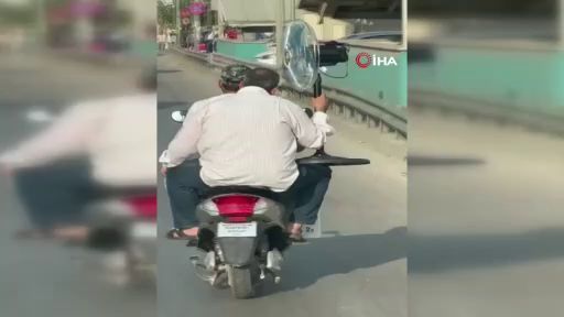 Bursa’da artan hava sıcaklığı nedeniyle elektrikli bisiklet ile giden bir vatandaş, serinlemek için çareyi vantilatörde buldu. Sürücünün arkasında bir eliyle vantilatörü, diğer eliyle iki tekerlekli araca tutunan adam doğal klimasıyla trafikteki diğer sürücülerin kamerasına yansıdı.